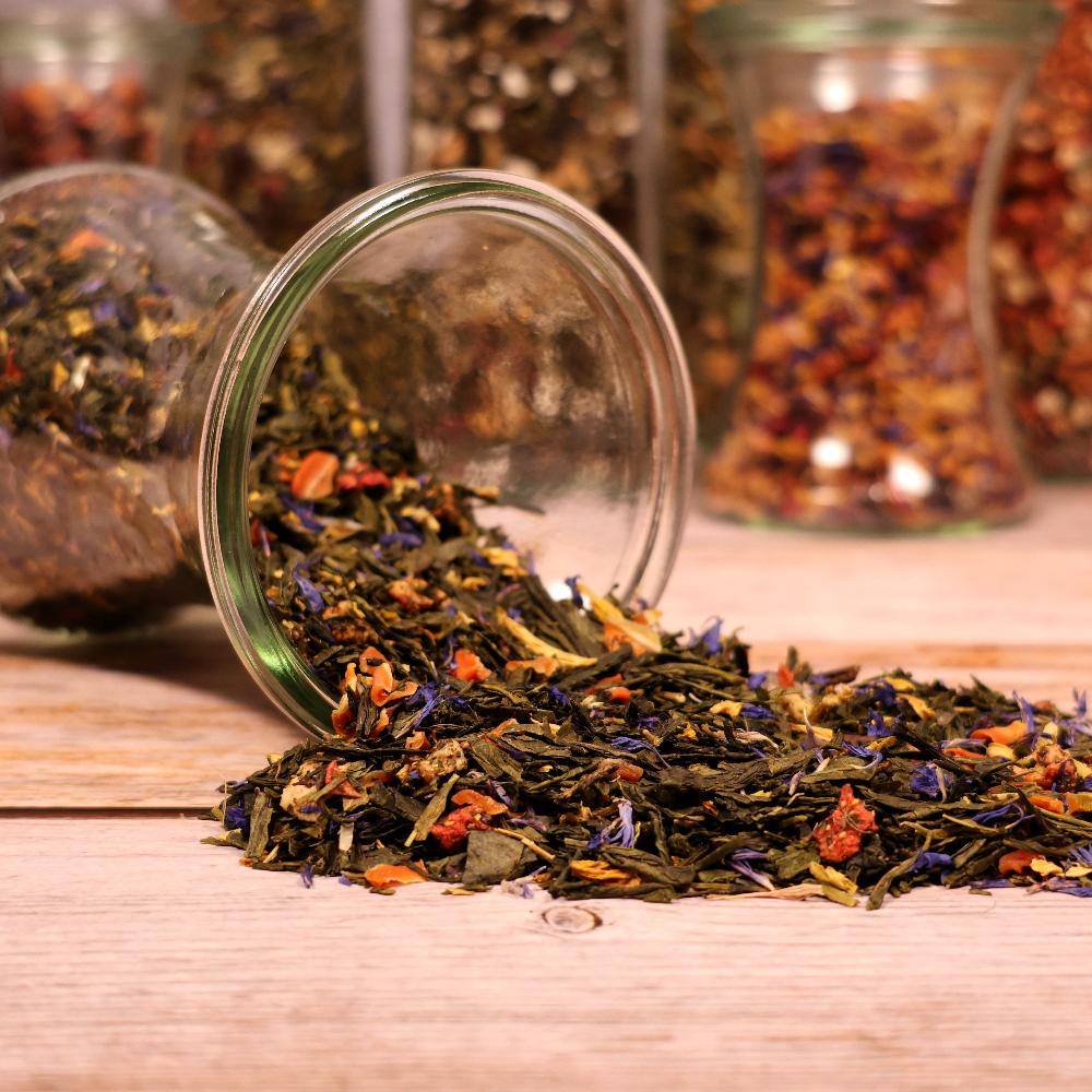 Allerlei Fruchtigkeit in einem Glas! Unser Erdbeersecco Tee, auf Basis von Sencha Tee, ist der perfekte Begleiter für heiße Sommertage. Genieße ihn pur oder als Basis für erfrischende Cocktailkreationen. Auch als Eistee ist er ein wahrer Genuss.