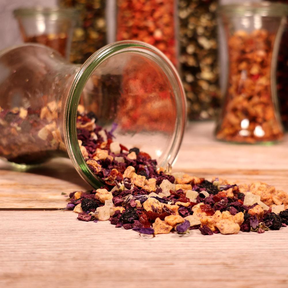 Leckere Früchtemischung mit Veilchen und Vanille welche sich wunderschön lila färbt.